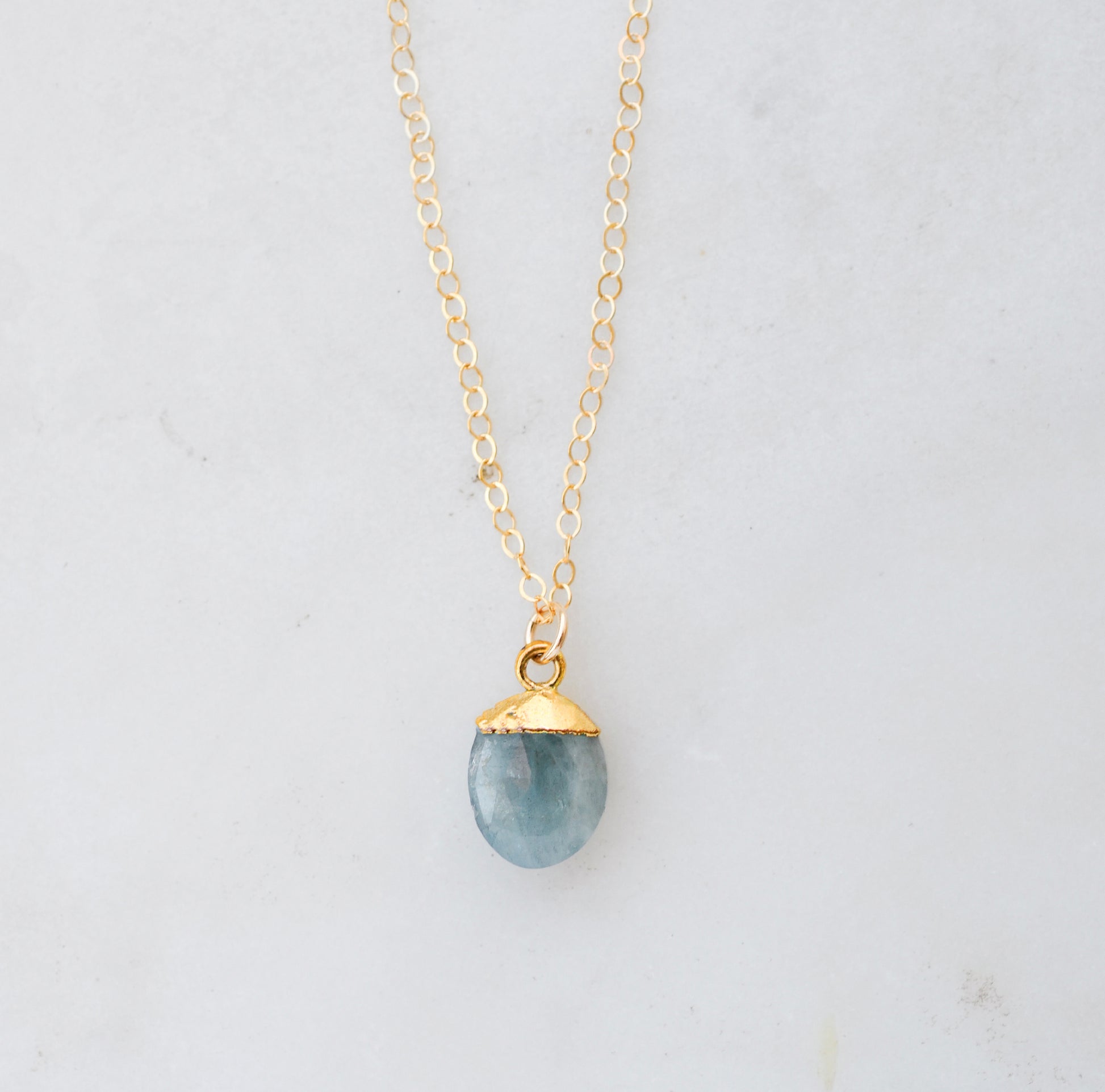 Each gem top is dipped in 24k gold or sterling silver (electroplated) and set onto a sterling silver or 14k gold fill chain.