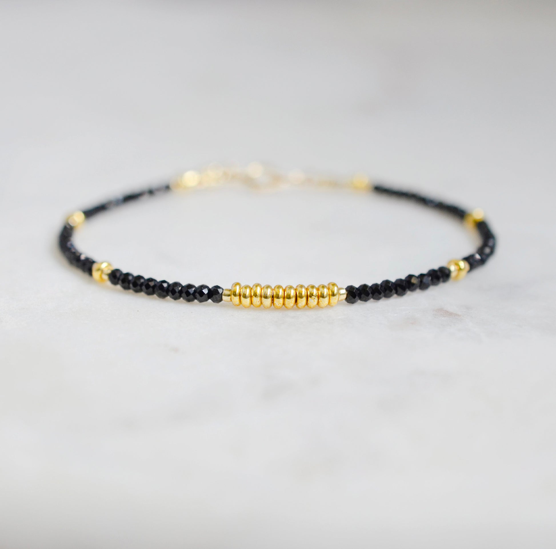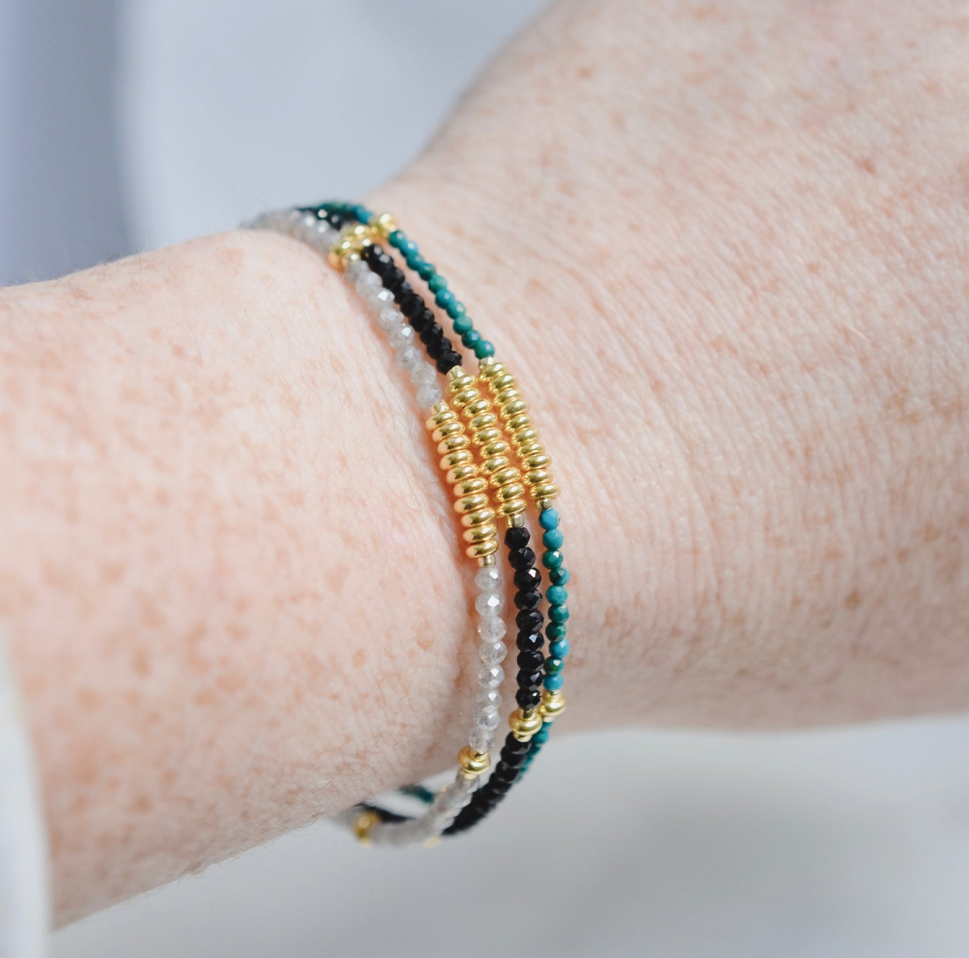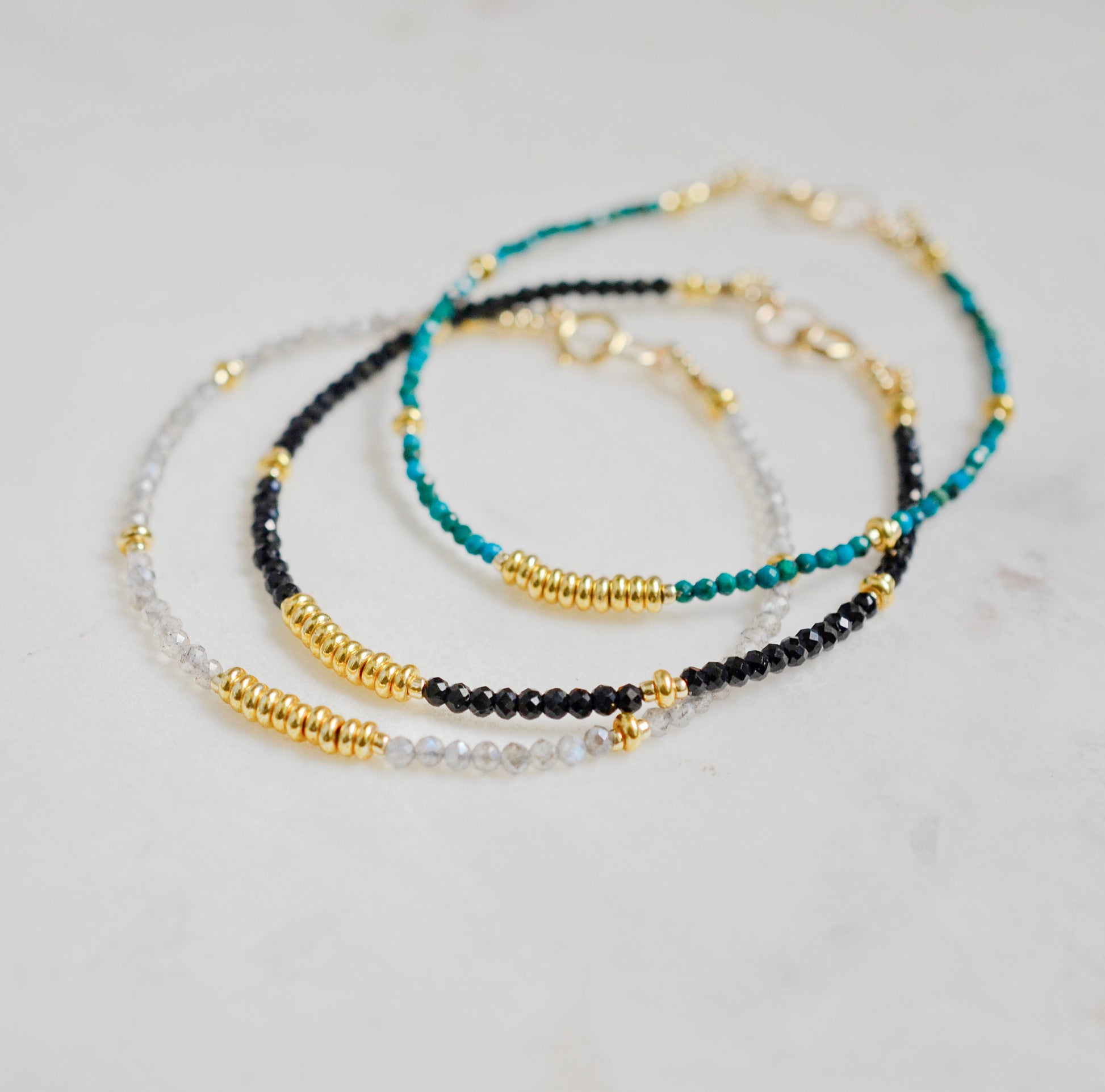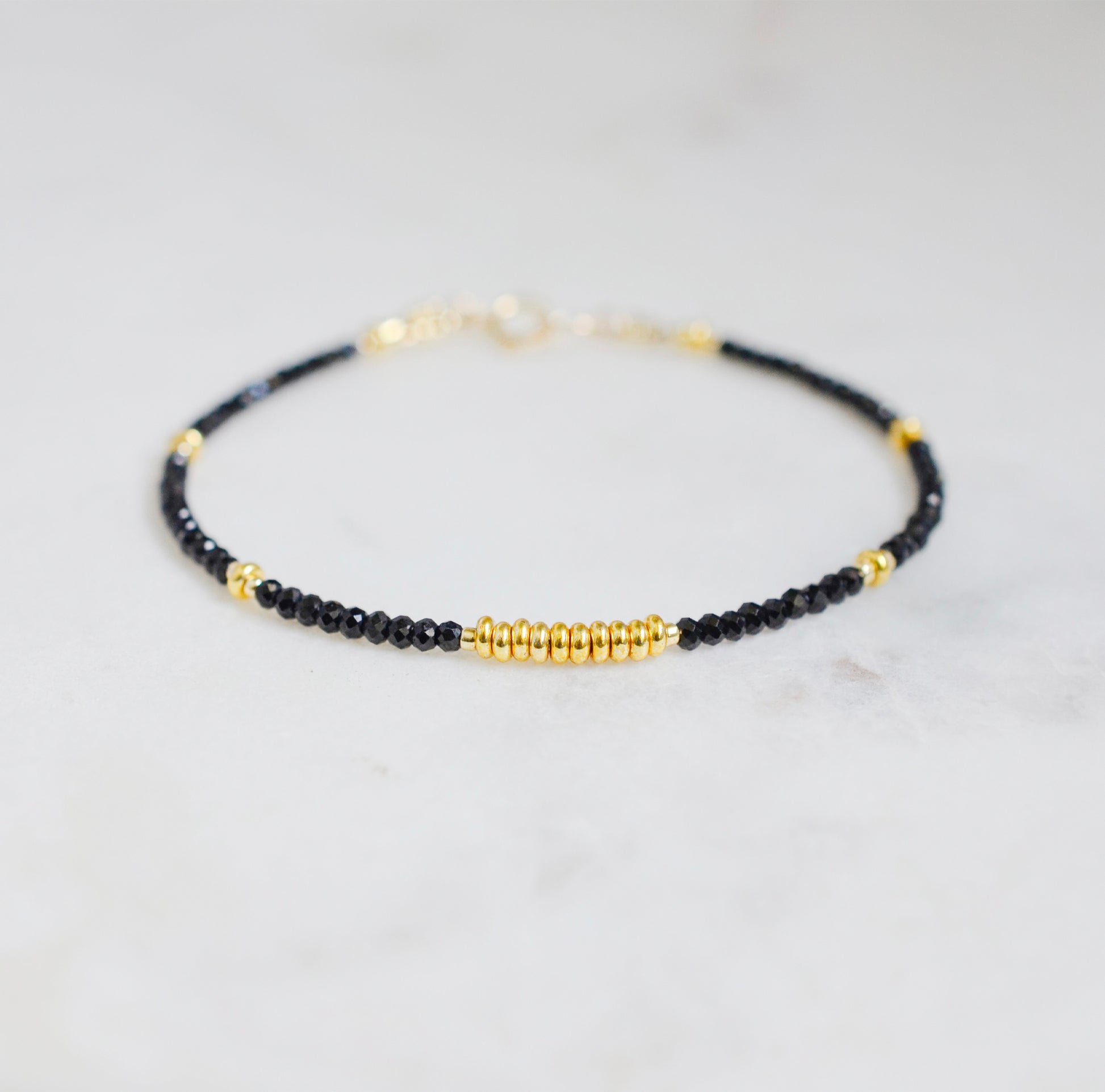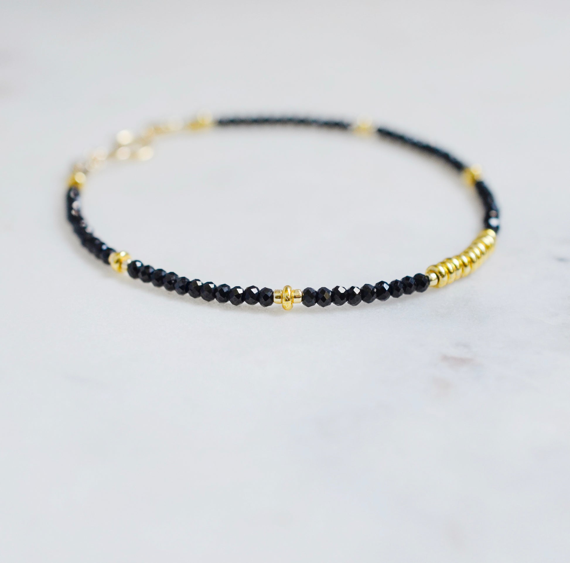 Looking for a simple style? Or do you love layering beaded bracelets? Our Kassia Bracelet is ideal for both! This delicate accessory is great for daily wear and showcases faceted black Onyx beads hand-strung with 14k gold filled or sterling silver.