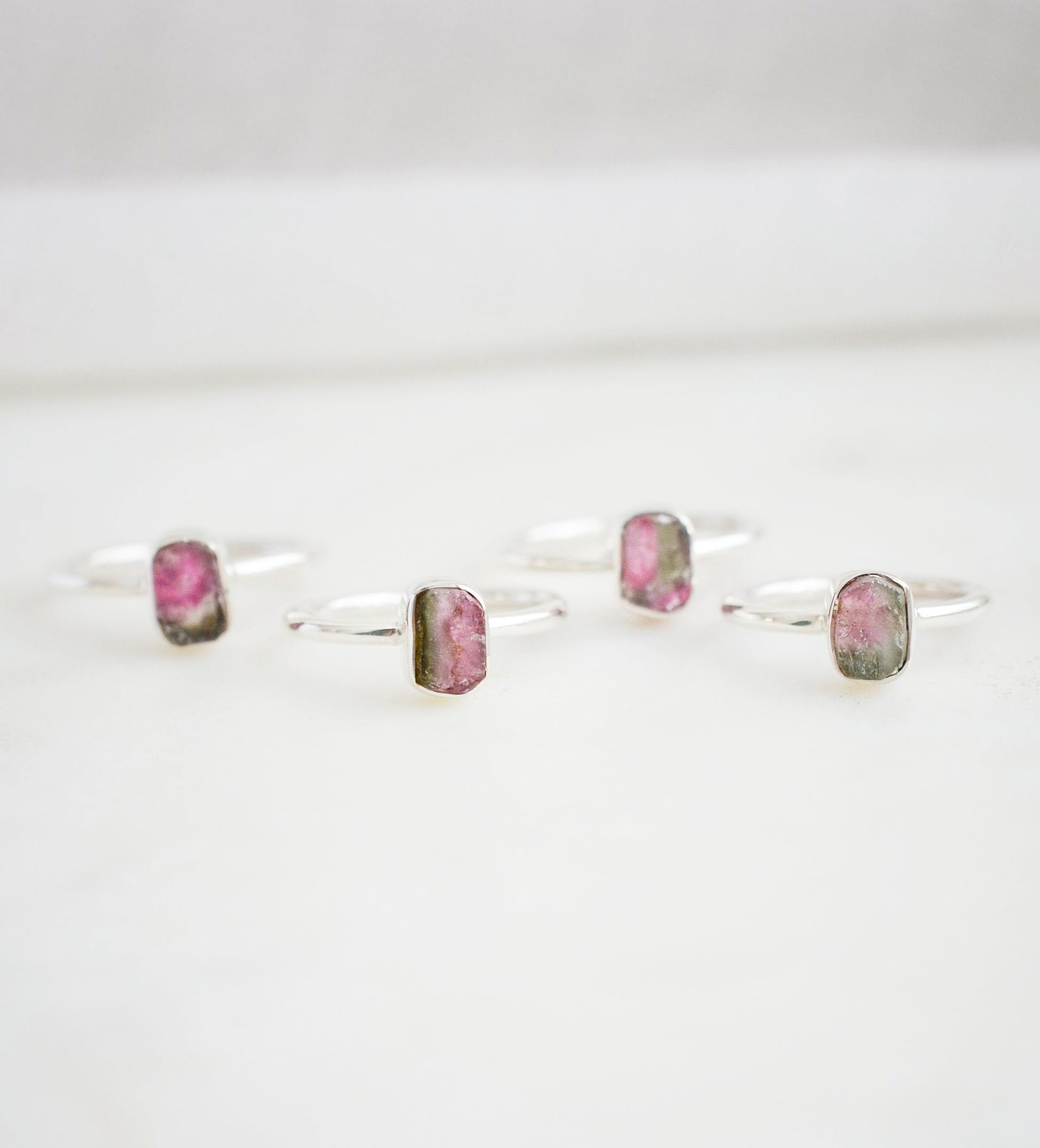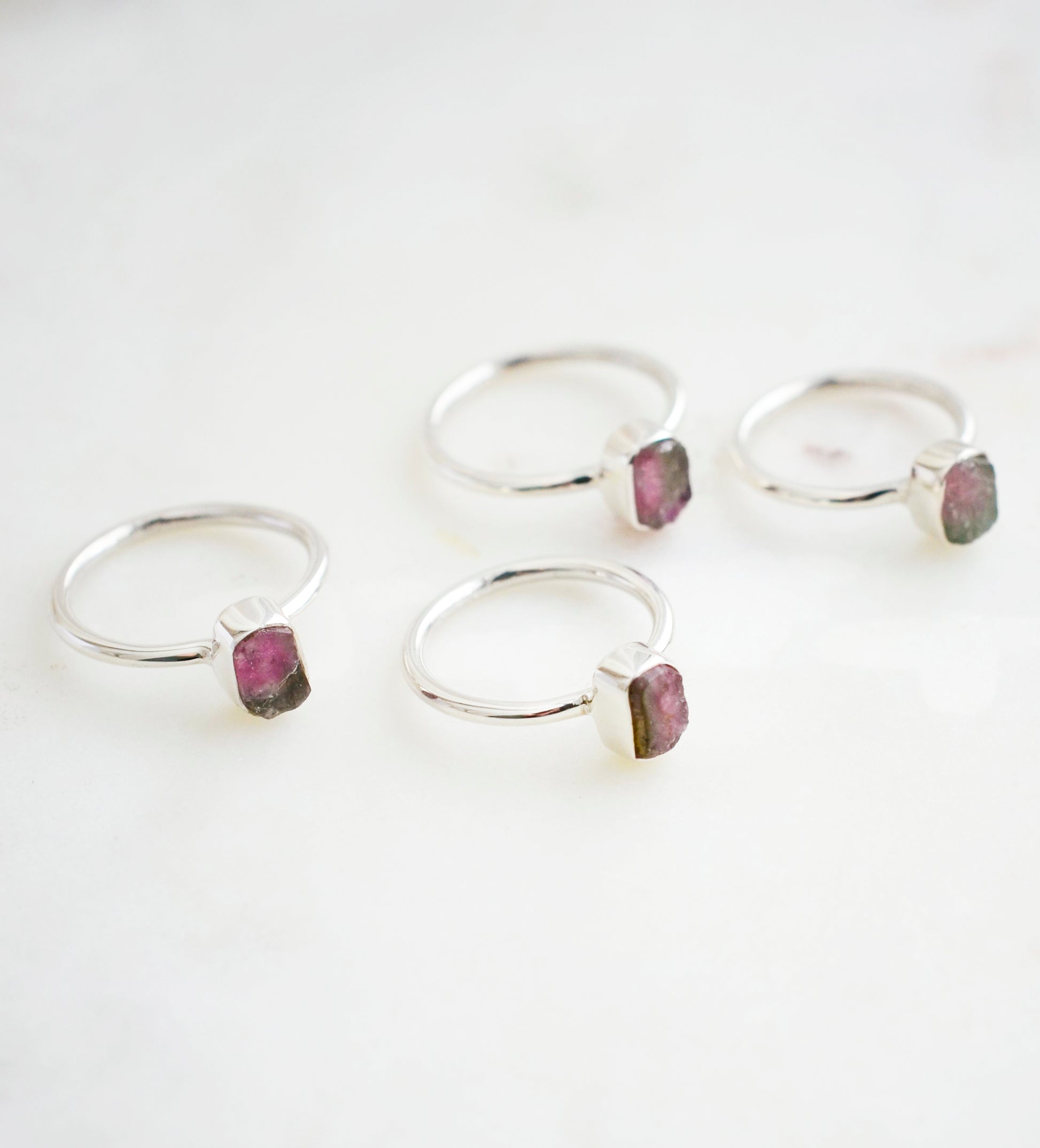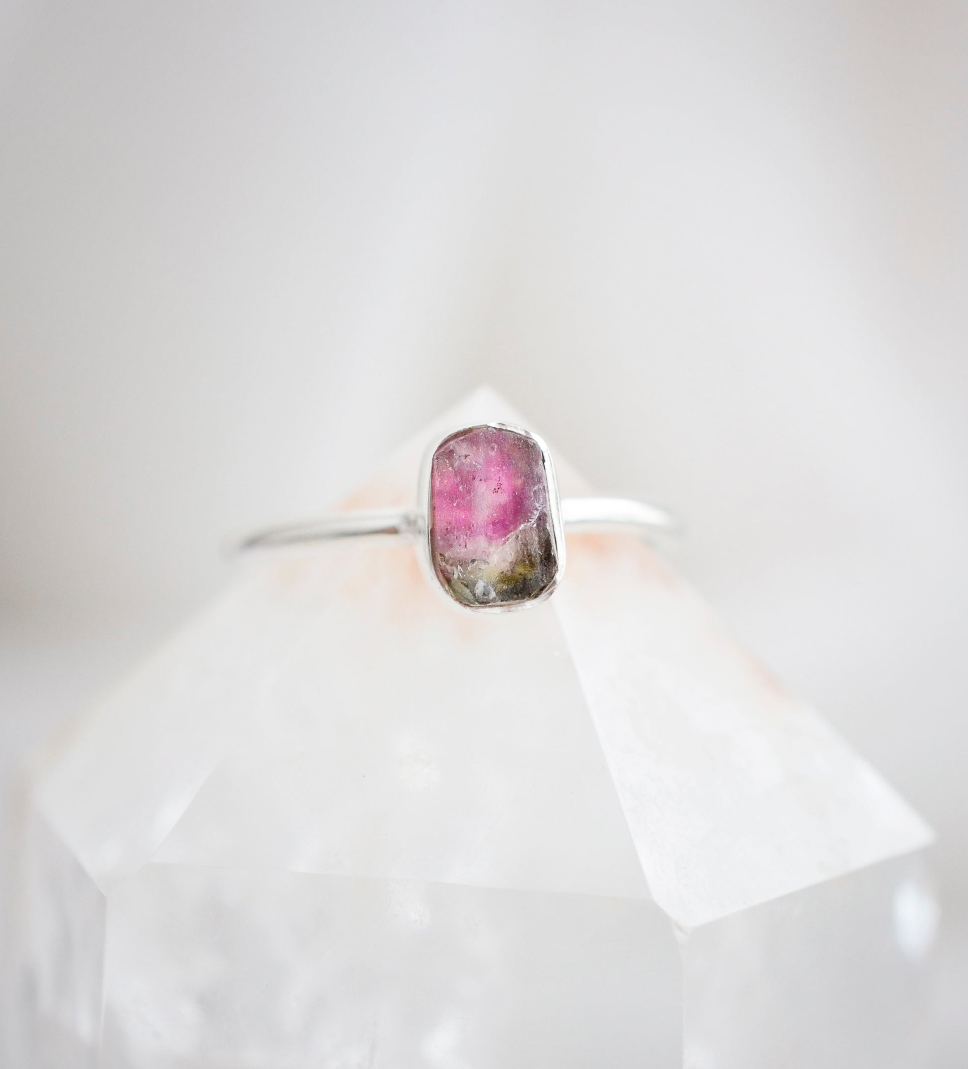 Raw Watermelon Tourmaline Ring in Sterling Silver