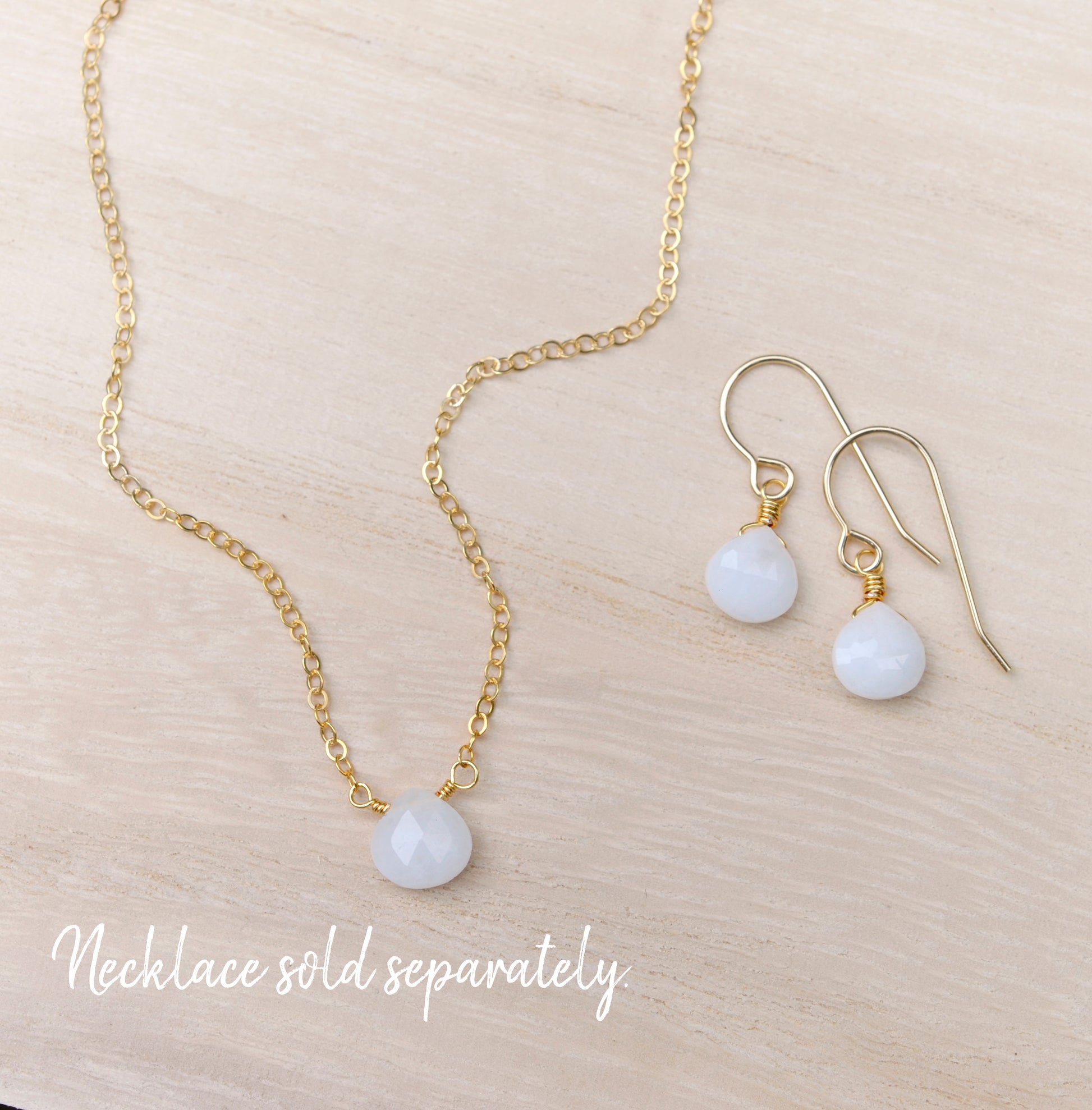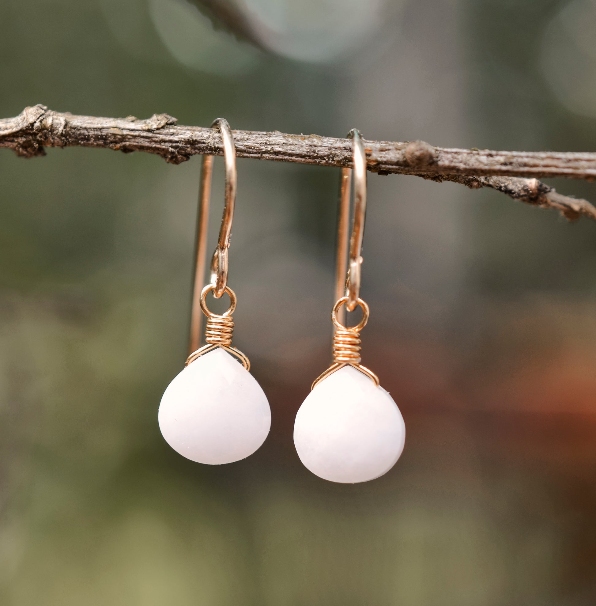 These little beauties will go with anything! Each earring is handcrafted with faceted white quartz gemstones in your choice of sterling silver or 14kt gold filled. The earrings come with little rubber backs, as well.
